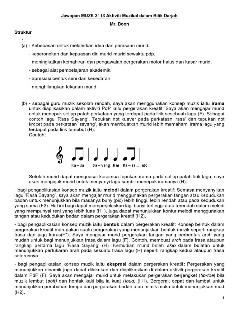 Jawapan Muzk 3113 Aktiviti Muzikal Dalam Bilik Darjah