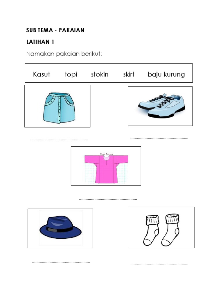 Prasekolah Sk Raja Chulan Lembaran Kerja Tema Pakaian