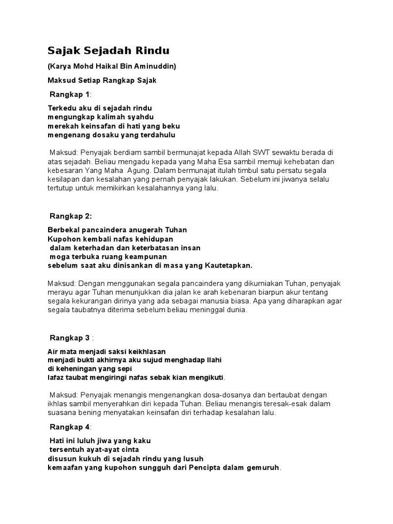 Laman Bahasa Melayu Spm Nota Puisi Moden Sajak Sejadah Rindu Mohd Haikal Aminuddin