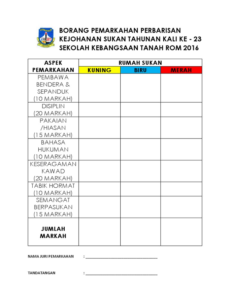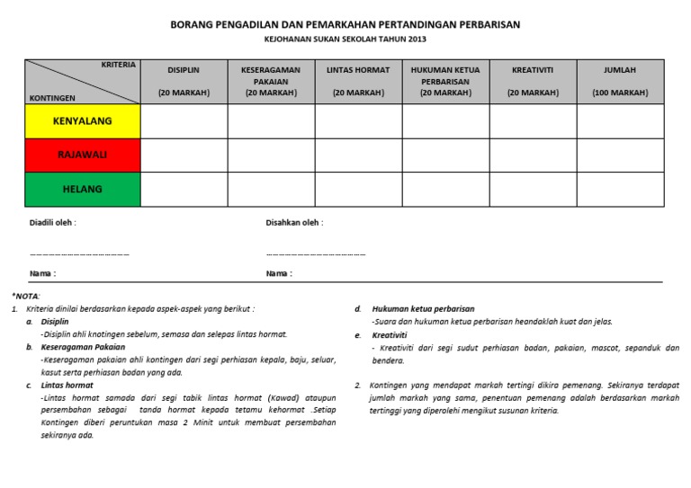 Doc Borang Pemarkahan Hiasan Khemah Sukan Terbaik Mohd Syaris Hussain Academia Edu