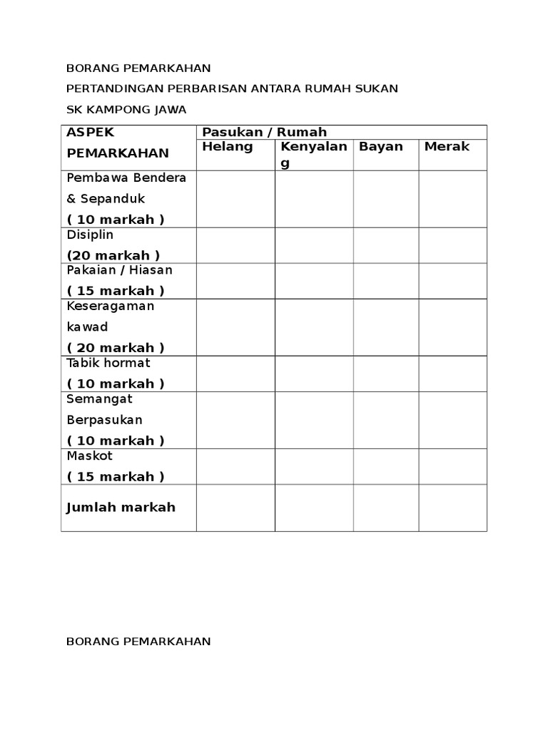 Borang Pemarkahan Pertandingan Perbarisan Rumah Sukan Doc