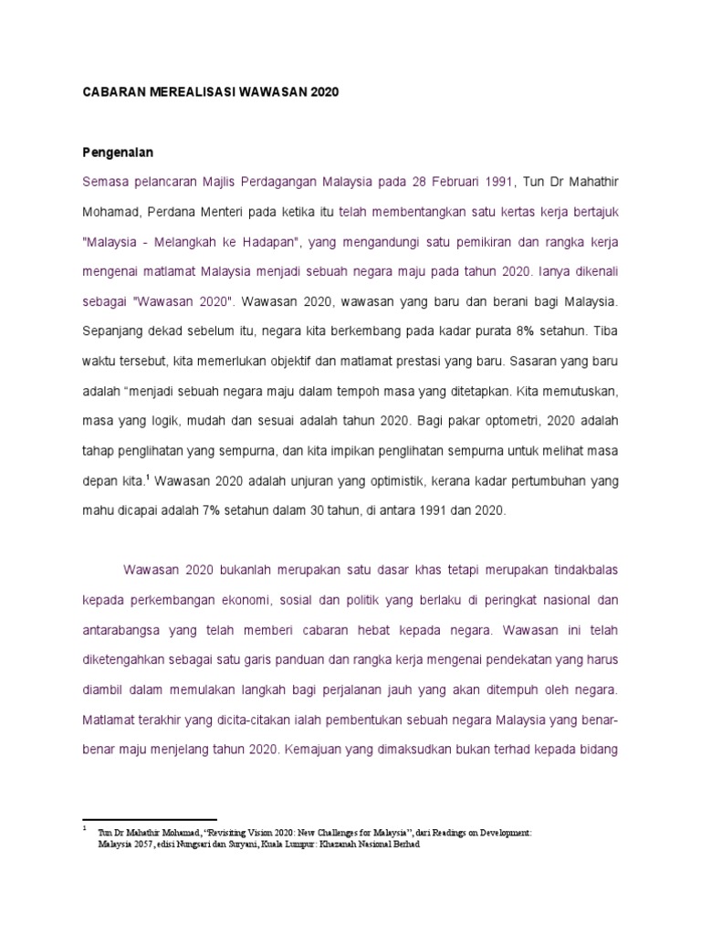 Cabaran Dalam Merealisasikan Wawasan 2020