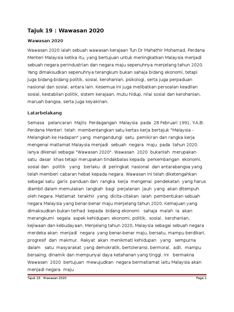 Wawasan 2020 Sembilan Cabaran Interpretasi