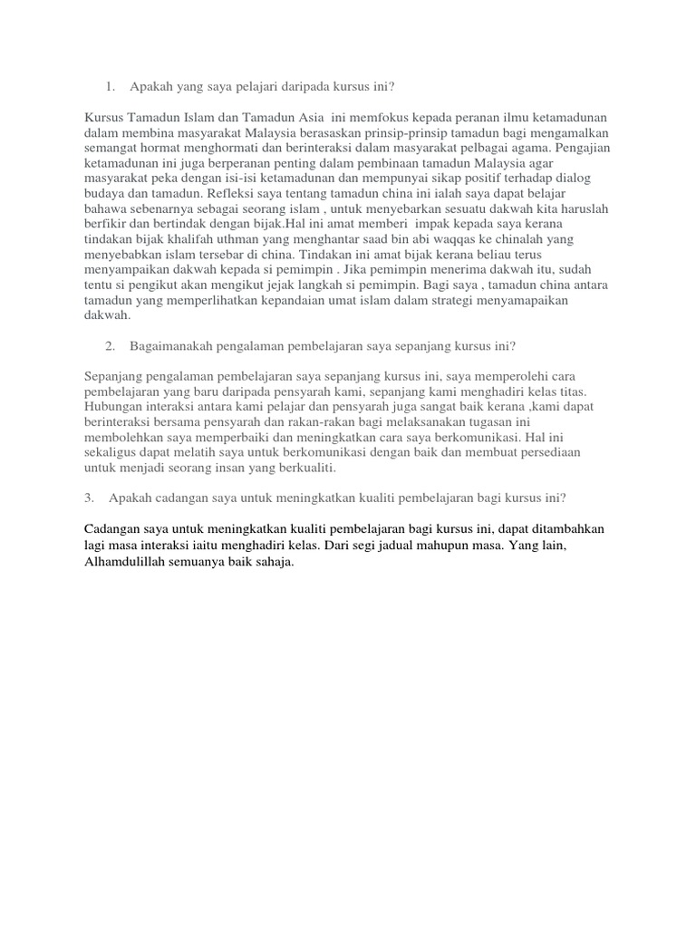 Laporan Reflektif Docx 97 Laporan Reflektif Kursus Tamadun Islam Dan Asia Kod Mpu3122 Ini Merupakan Salah Satu Kursus Yang Diambil Oleh Saya Dalam Course Hero
