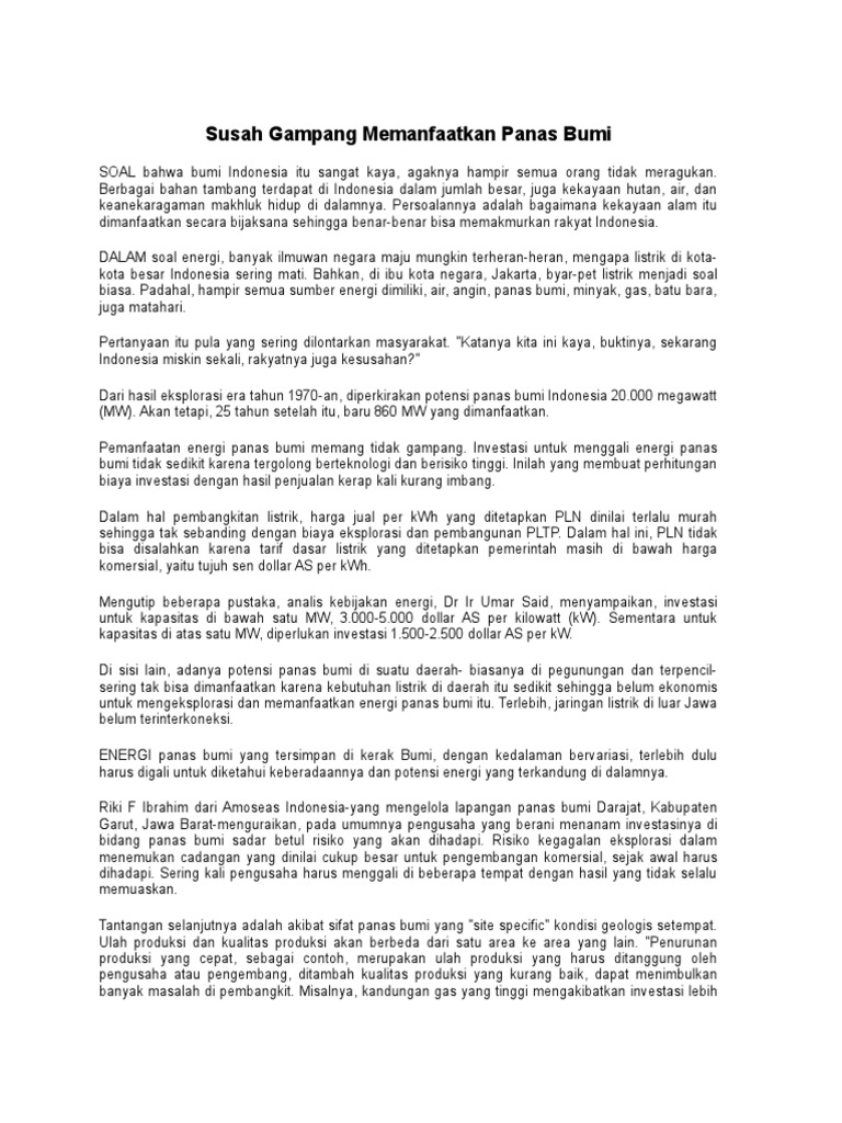 Susah Gampang Memanfaatkan Panas Bumi
