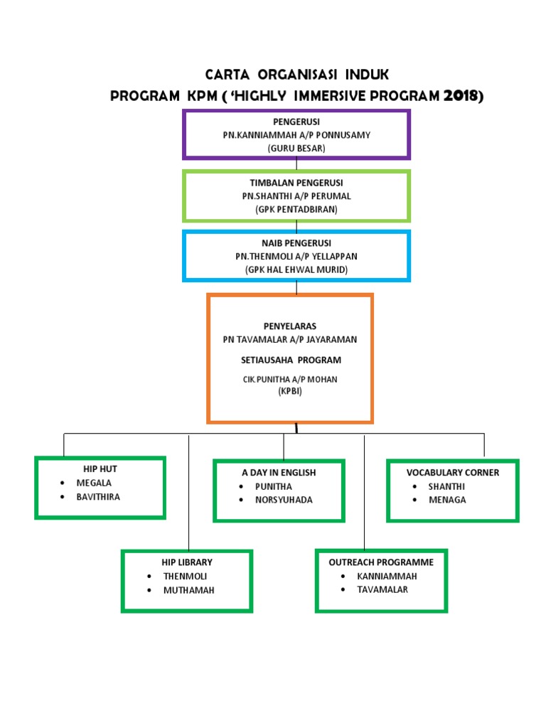 2018 Carta Organisasi Kerja Hip 1 English Vocabulary Esl Learners Hips