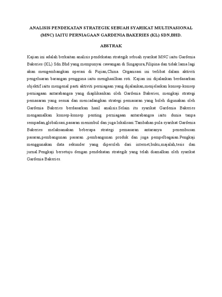 Doc Abstrak Analisis Campuran Pemasaran Syarikat Haji Abdul Rahim Bakery Bandar Country Homes Aliah Tajuddin17 Academia Edu