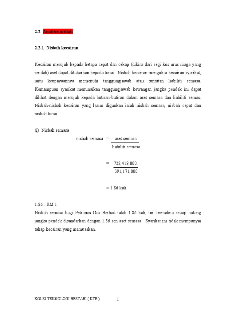 3 20 Kaedah Analisis 21 Nisbah Kecairan 211 Nisbah Semasa Nisbah Semasa Course Hero