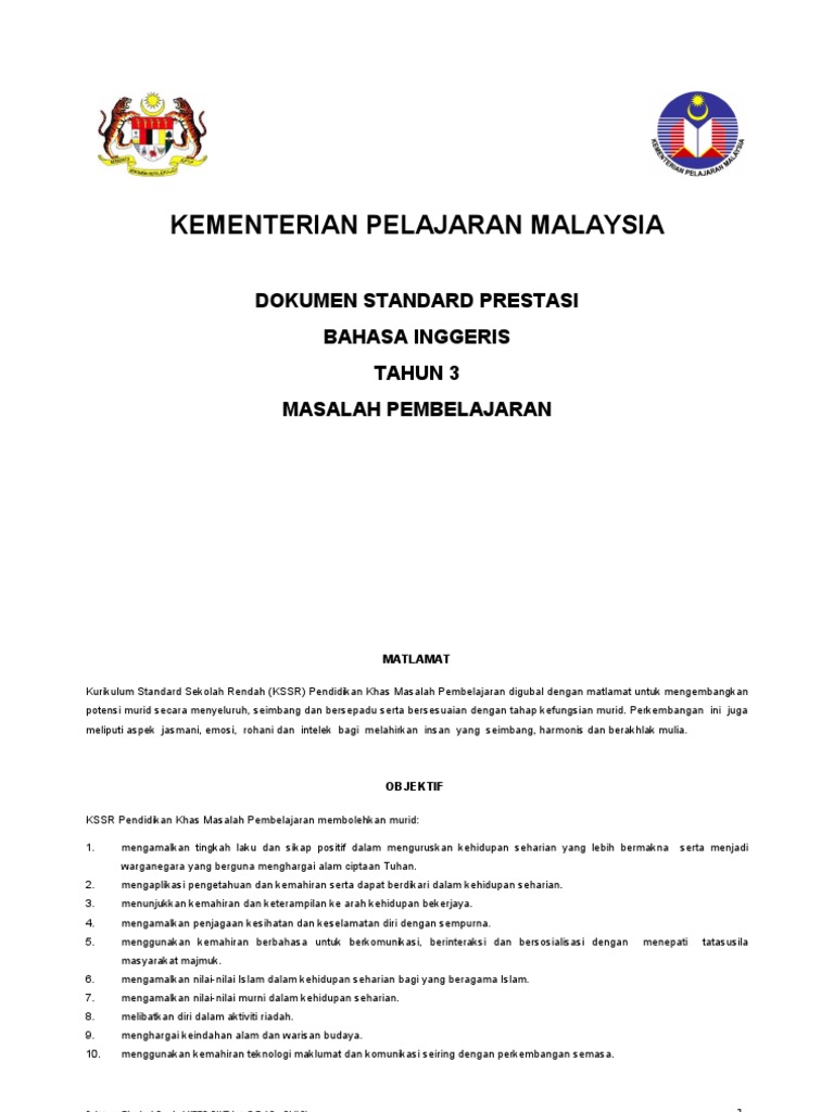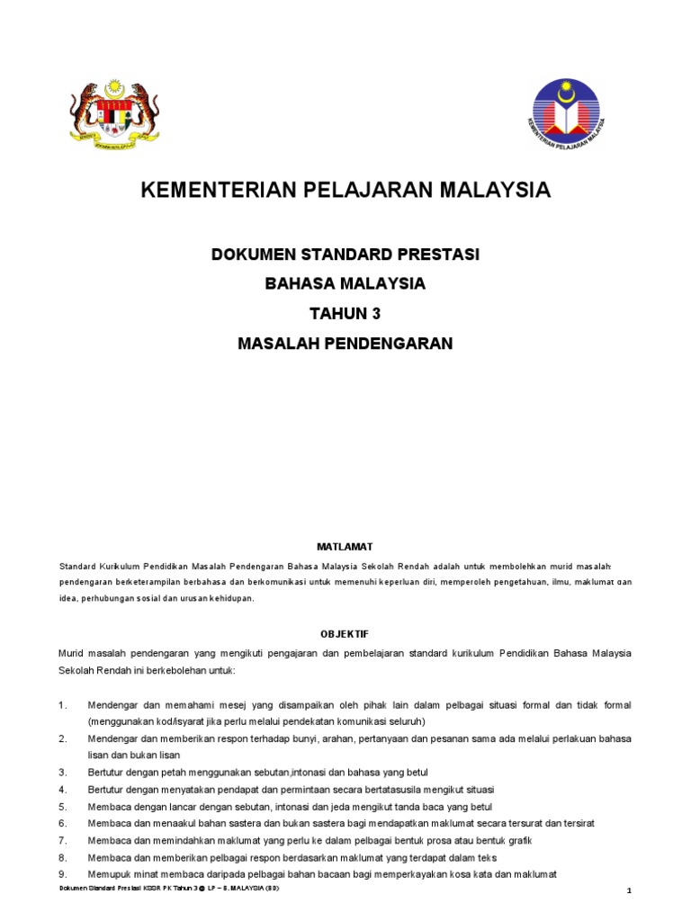 Dokumen Standard Prestasi B Malaysia Mod Bd Tahun 3 Pendidikan Khas Bermasalah Pendengaran