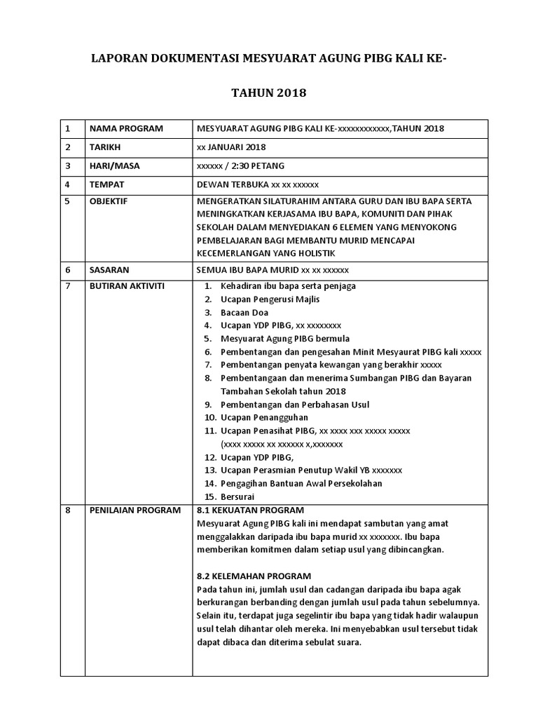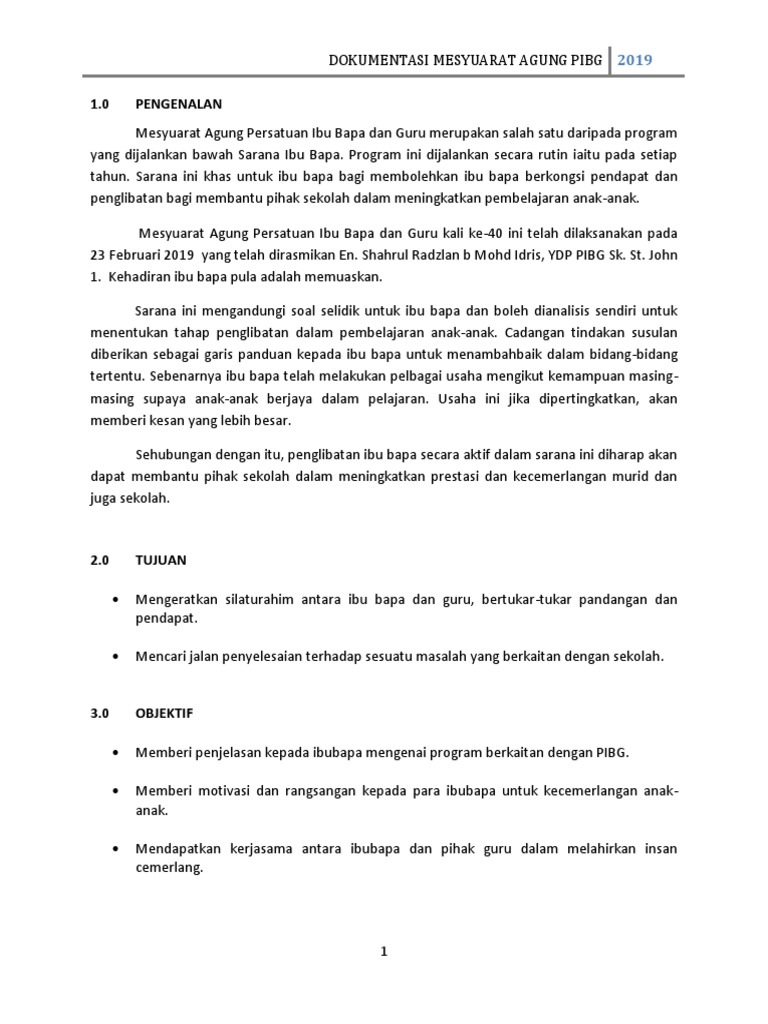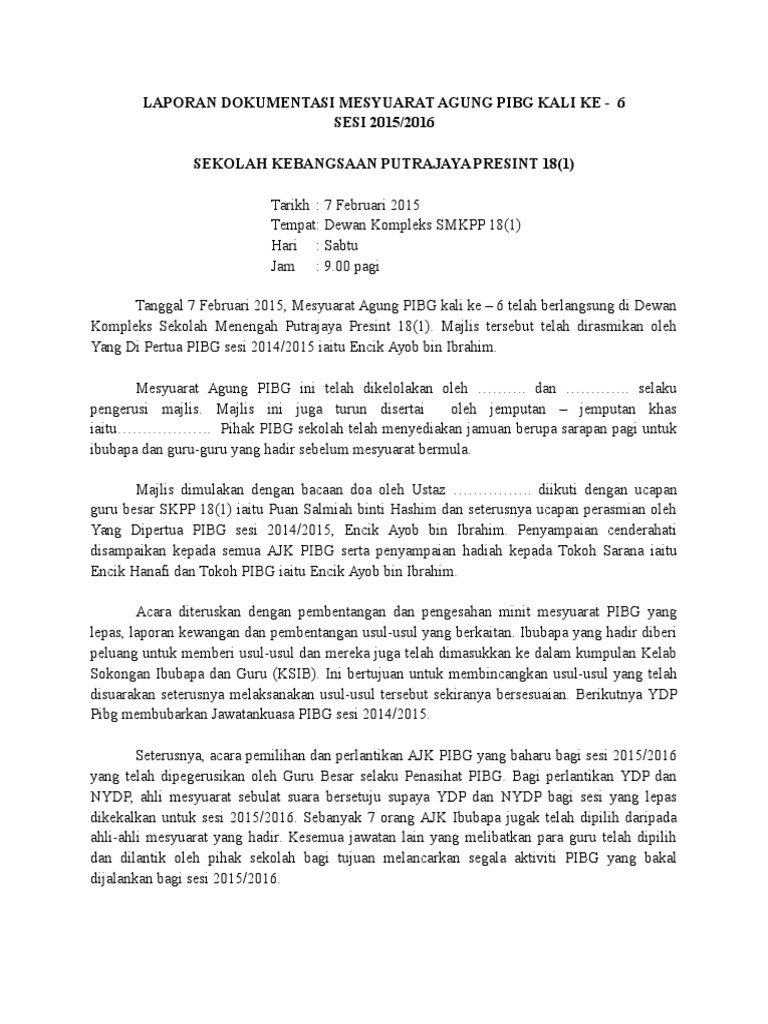 Laporan Dokumentasi Mesyuarat Agung Pibg Kali Ke 2018