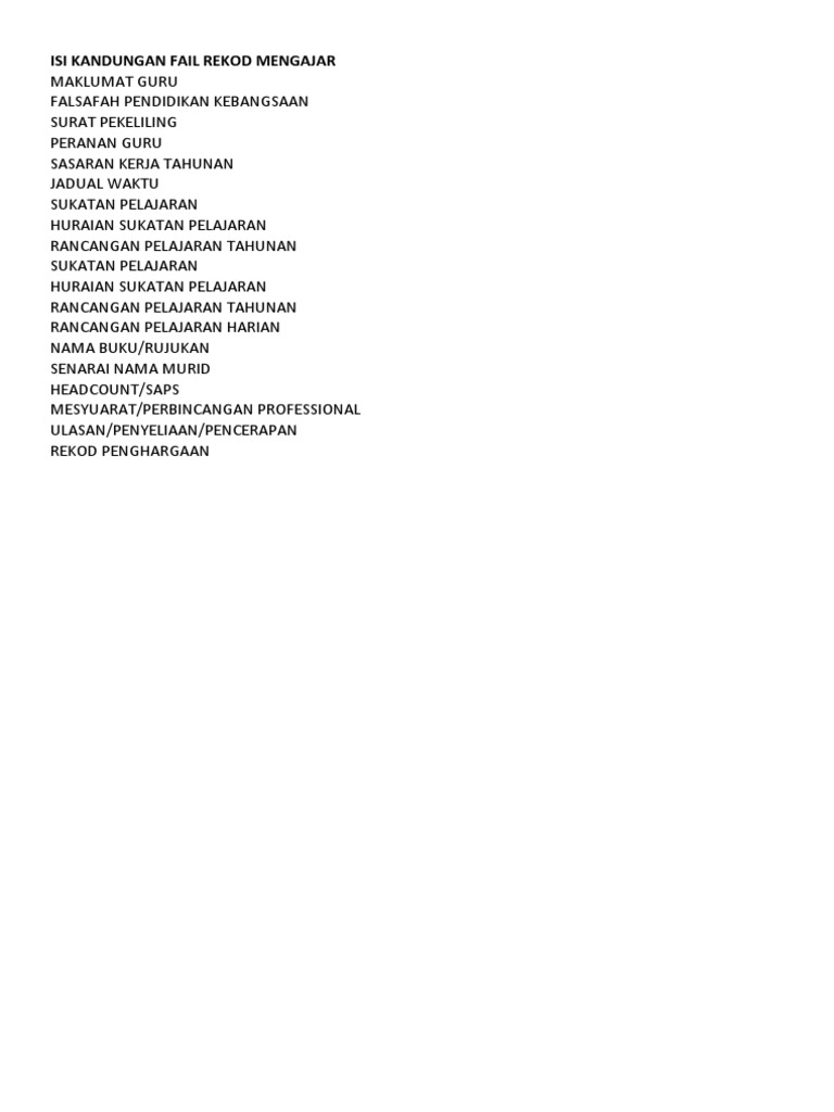 Kandungan Rekod Persediaan Mengajar 2016 Docx