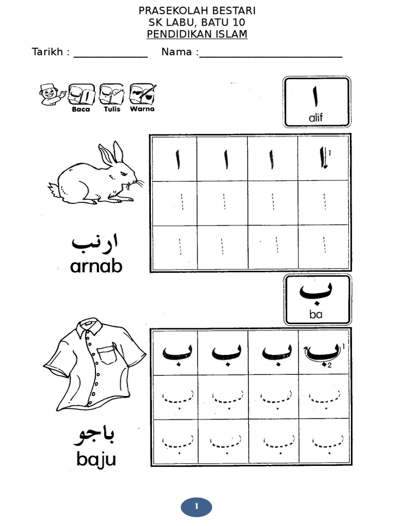 Lembaran Kerja Jawi Prasekolah Pentaksiran Bertulis Jawi Prasekolah Kitpramenulis