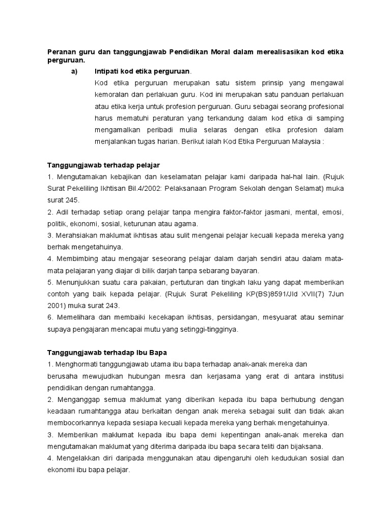 Peranan Guru Pendidikan Moral Dalam Menjayakan Kod Etika Perguruan Docx