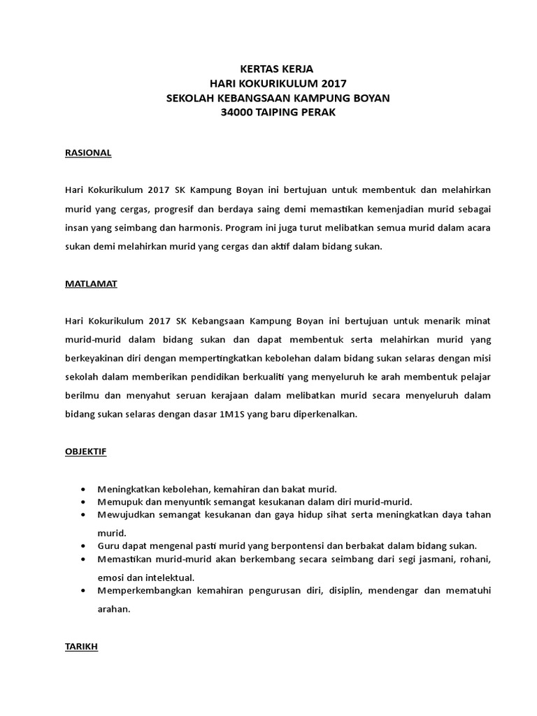 Doc Kertas Kerja Hari Kokurikulum Noorpiza Mahpudz Academia Edu