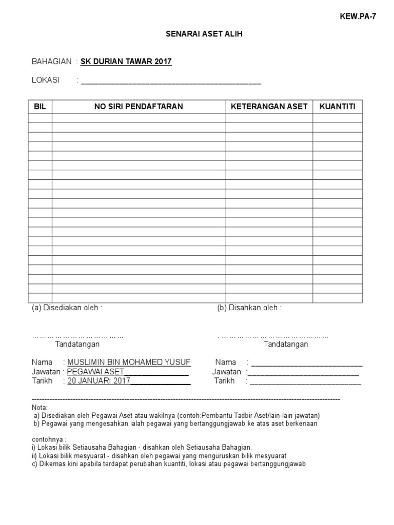7 Kew Pa 7 Senarai Aset Di Lokasi Kelas 2i Doc Kew Pa 7 Senarai Aset Alih Kerajaan Bahagian Smk Asyakirin Bintulu Lokasi Kelas 21 Bil Keterangan Aset Course Hero