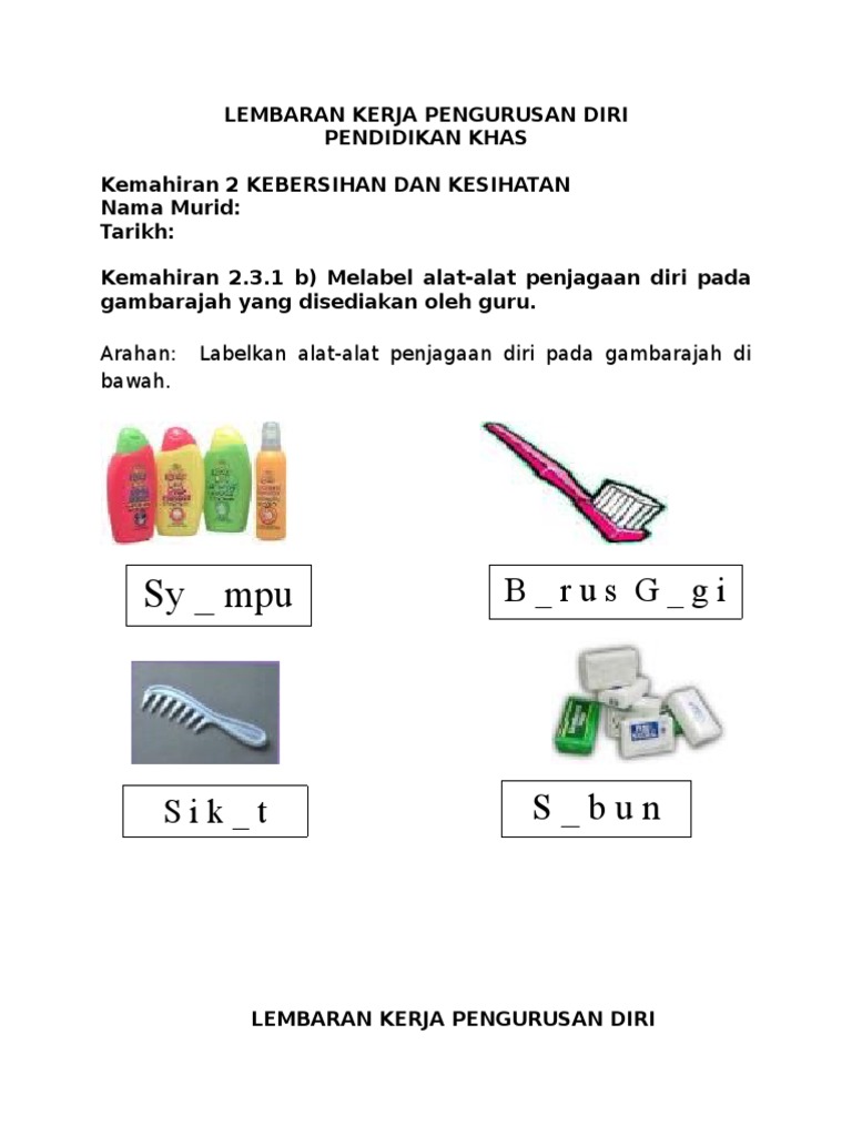 Lembaran Kerja Soalan Peperiksaan Pengurusan Diri Pendidikan Khas