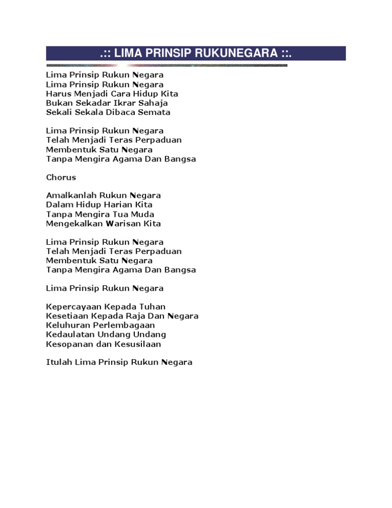 Pns Rukun Negara Lima Prinsip Rukun Negara