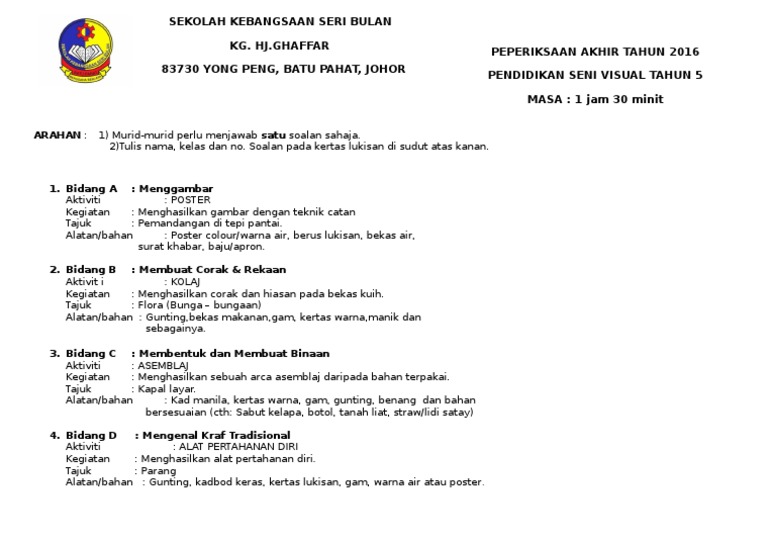 Dunia Seni Visual Sekolah Rendah Psv Tahun 4 Diorama