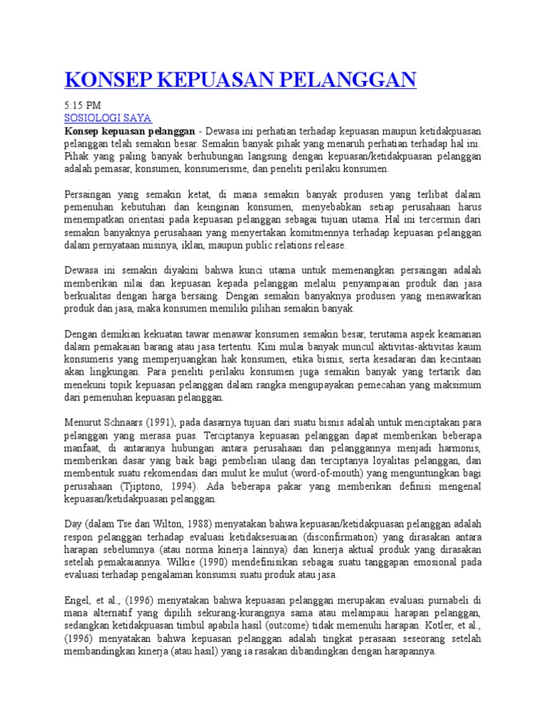 Belajar Serbaneka Konsep Kepuasan Pelanggan