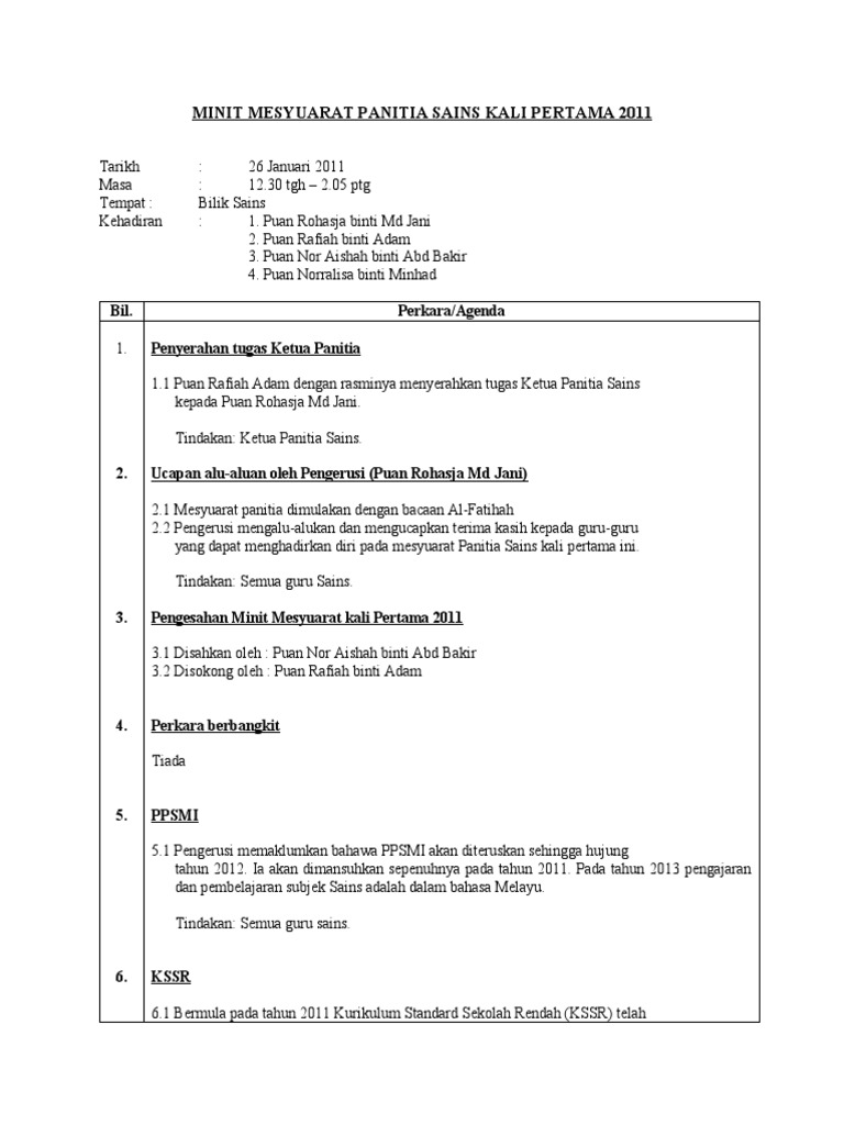 Minit Mesyuarat Panitia Sains Bil1 2018 Pages 1 5 Text Version Anyflip
