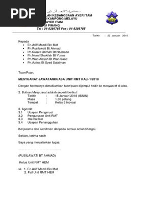 Doc Contoh Minit Mesyuarat Rmt Bilangan Jimi Ammy Academia Edu