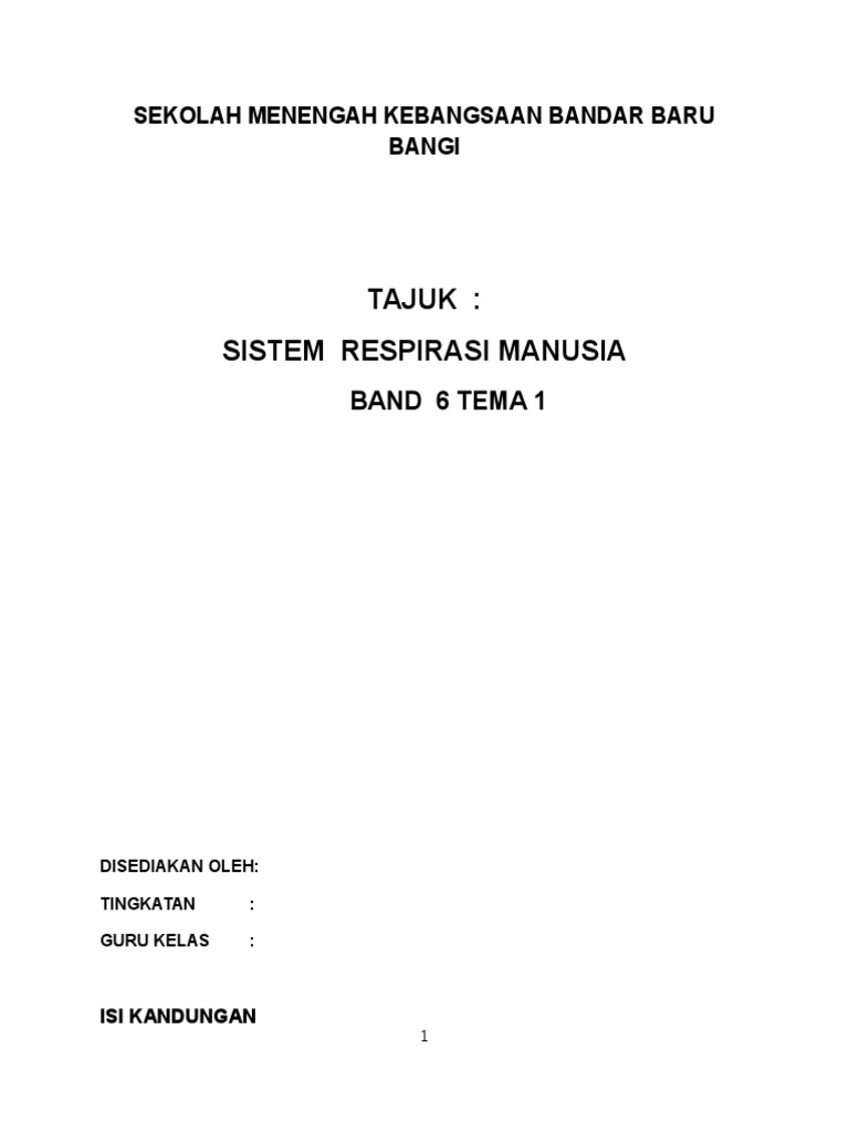 Rizal Rimynd Mekanisme Pernafasan Manusia Bab 1 Tingkatan 3