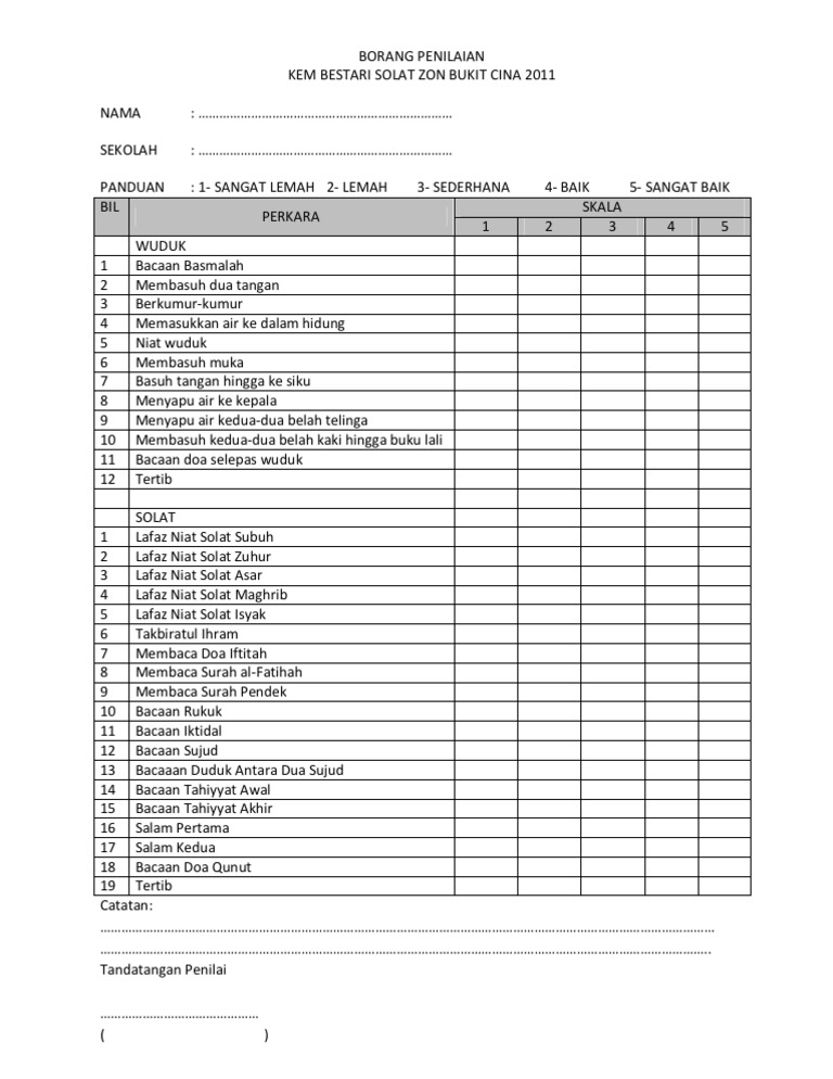 Borang Penilaian Kem Bestari Solat