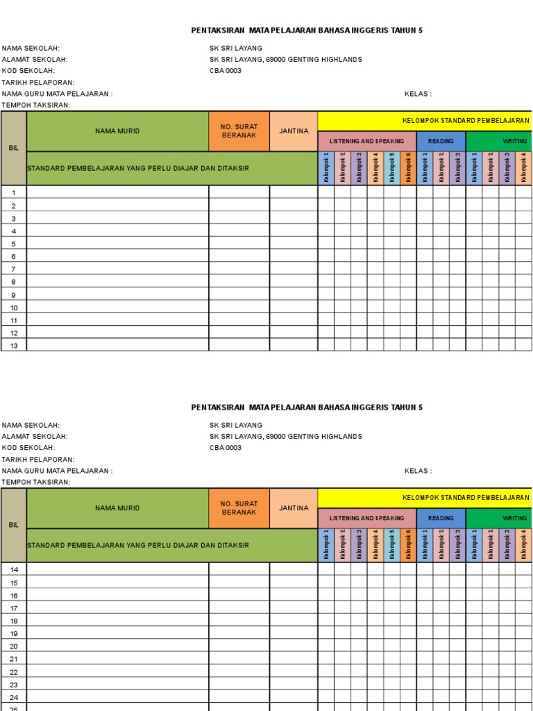 Himpunan Templat Pelaporan Pbd Tahun 5 Gurubesar My