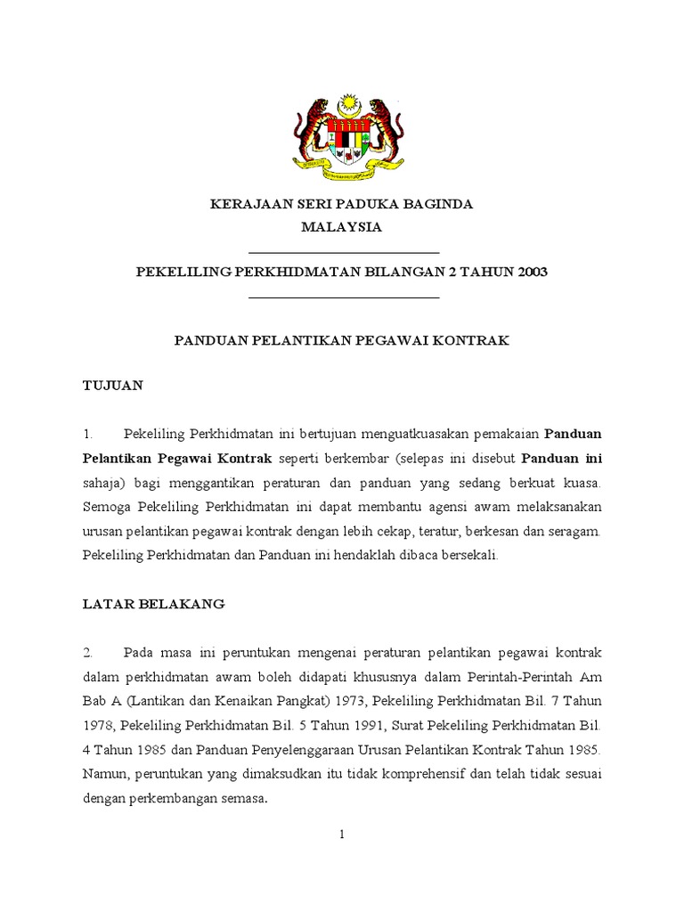 Pekeliling Perkhidmatan Bilangan 1 Tahun 2003 Pekeliling Perkhidmatan Bilangan 1 Tahun 2003 Kaedah Pdf Document