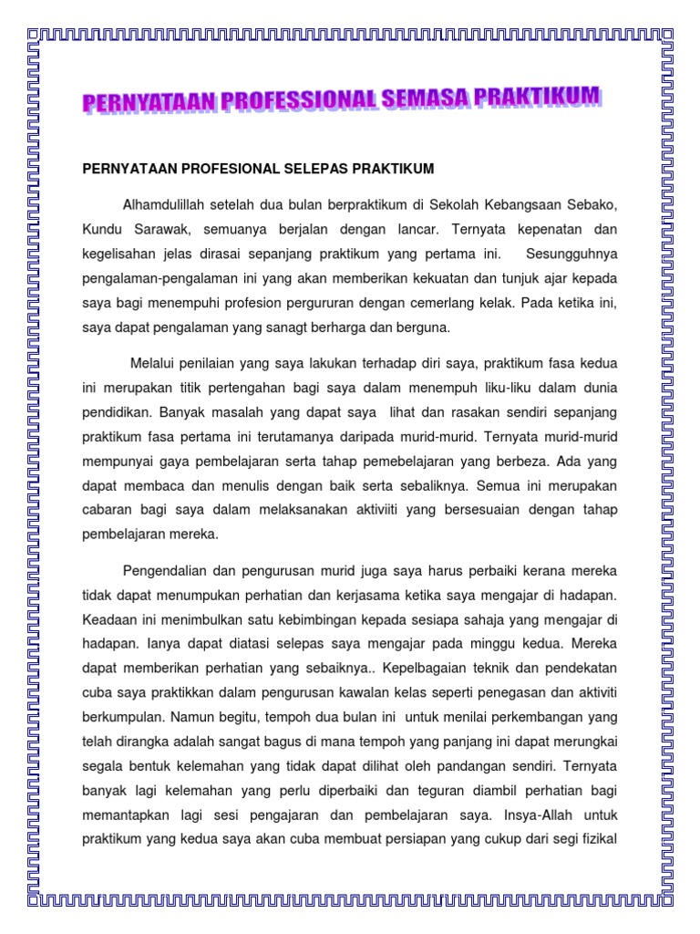 Pernyataan Profesional Selepas Praktikum