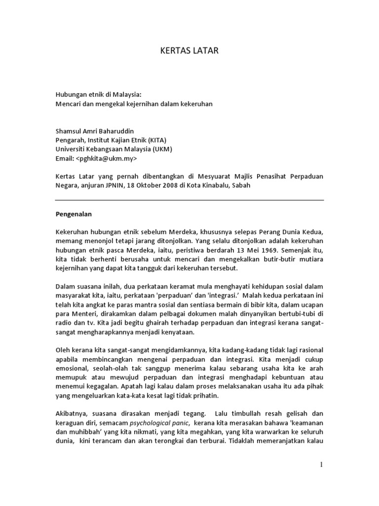 Pdf Hubungan Etnik Di Malaysia Mencari Dan Mengekal Kejernihan Dalam Kekeruhan Shamsul Ab Academia Edu