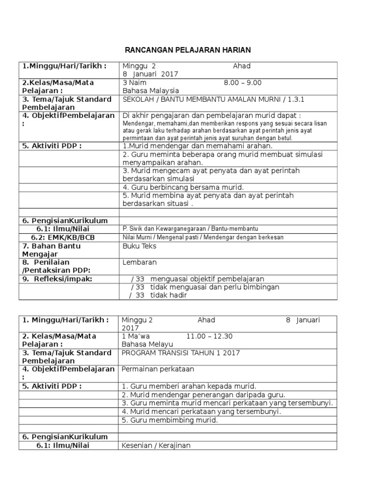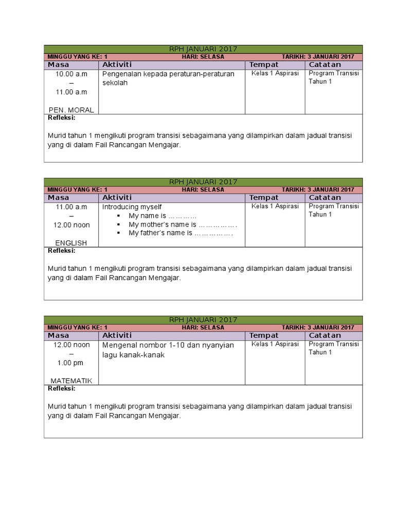 Doc Contoh Rph Program Transisi Rosazlinah Sumarie Academia Edu