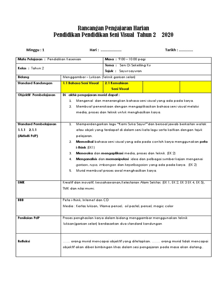 Rancangan Pengajaran Harian Pendidikan Kesenian Tahun 2