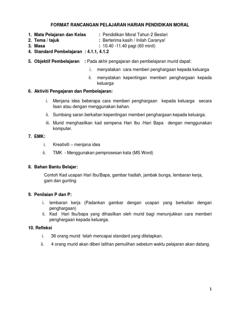 Rancangan Pengajaran Harian Pendidikan Moral Ahmad Husaini Academia Edu