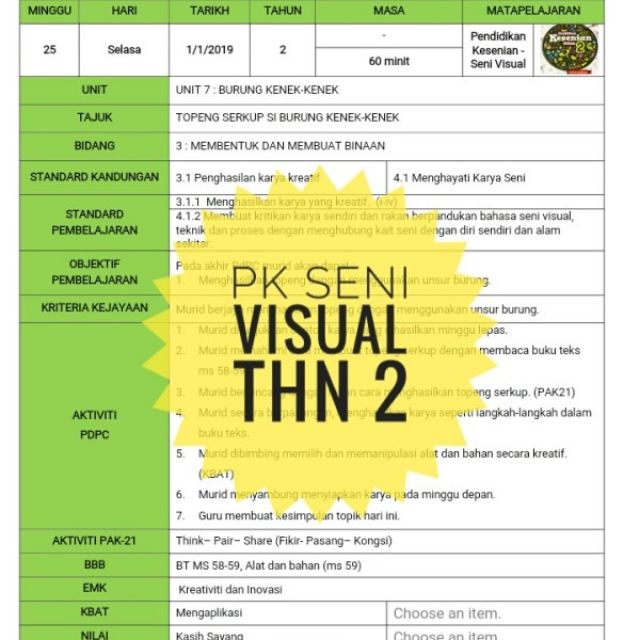 Rph Pendidikan Seni Visual Tahun 5 Rph Pak 21 Sekolah Rendah Online Shopping