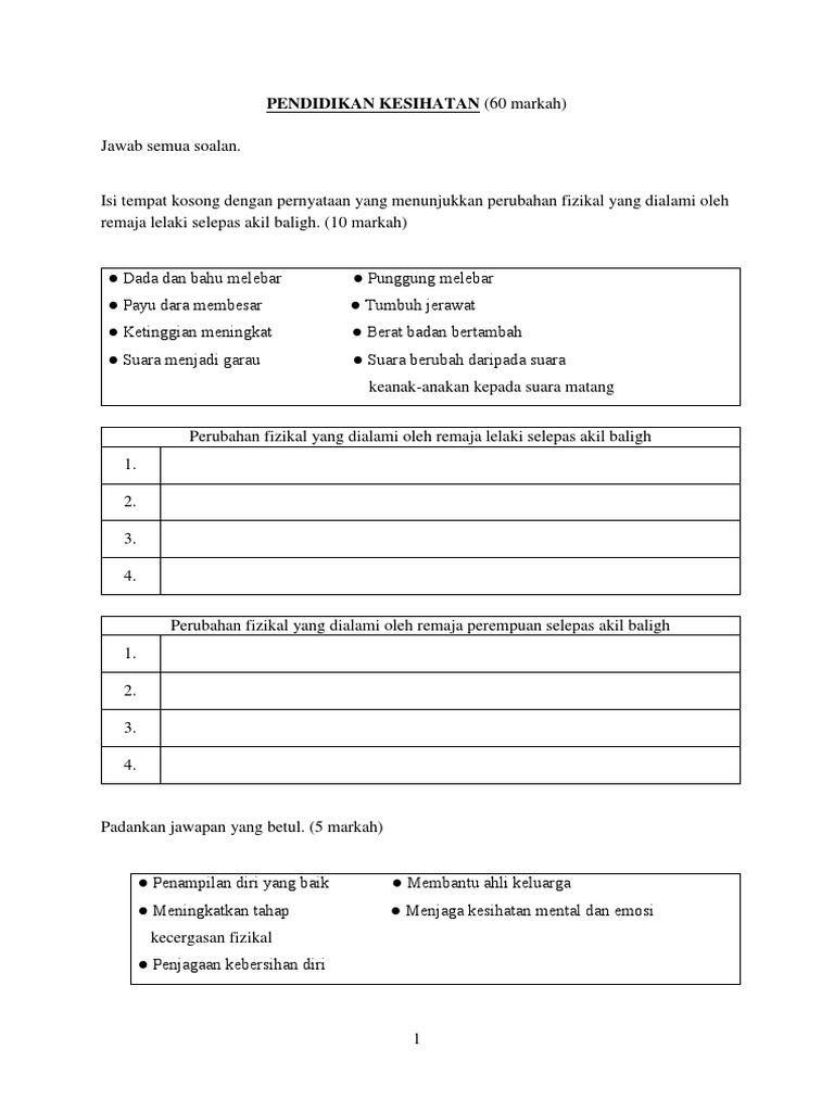 Soalan Peperiksaan Awal Tahun Pendidikan Kesihatan Tahun 4 Berguna Peperiksaan Pertengahan Tahun Pendidikan Kesihatan Pk Tahun 6 Skoloh