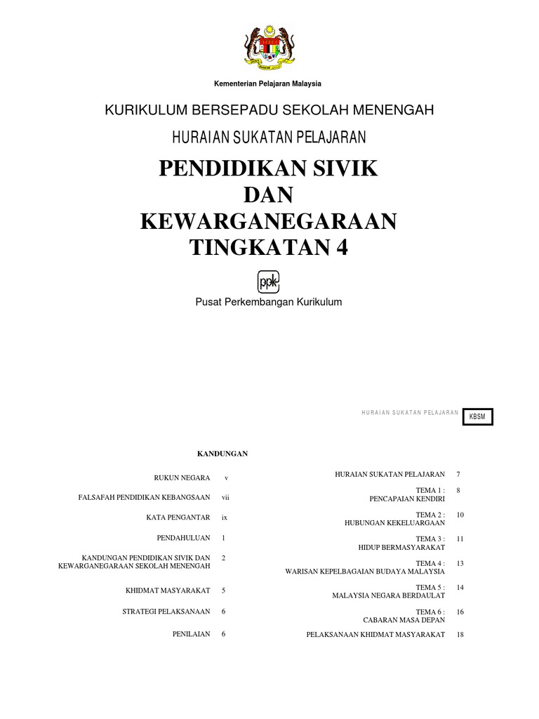 Pendidikan Sivik Dan Kewarganegaraan Tingkatan 4 Huraian Sukatan Pelajaran