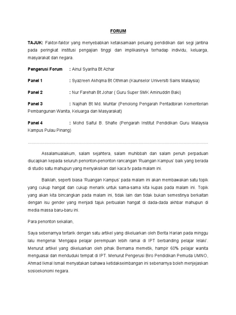 Skrip Forum Generik Bahasa Melayu Kontekstual Gbm1103 Studocu