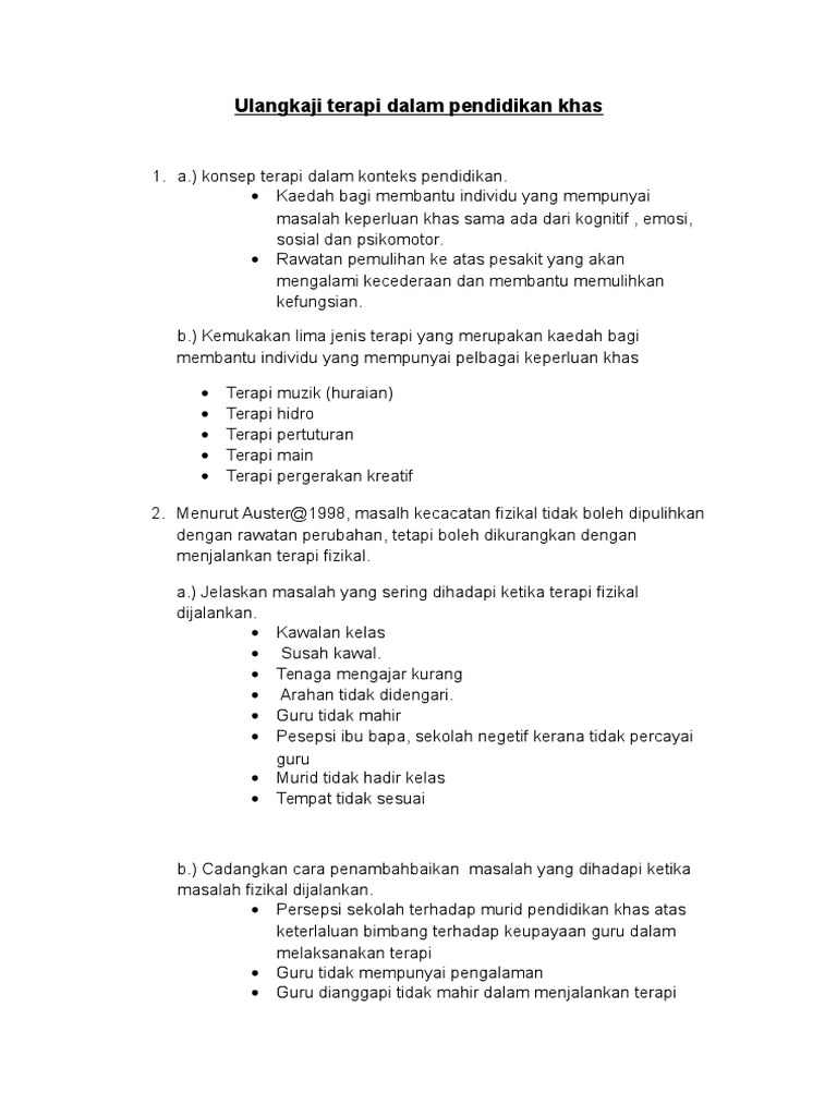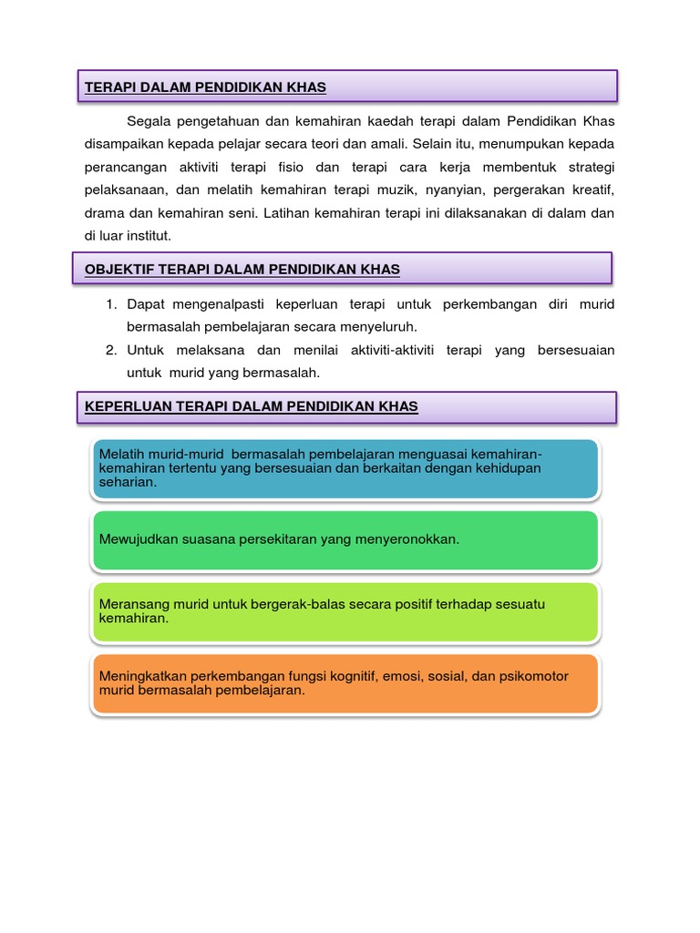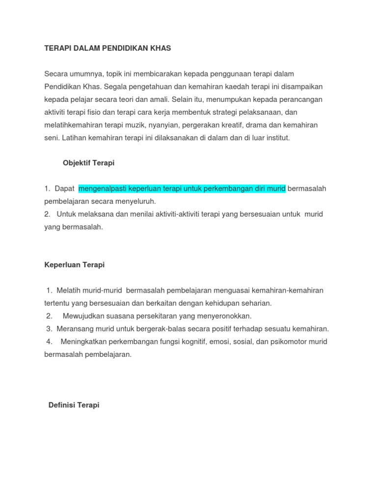 Keperluan Terapi Untuk Murid Pendidikan Khas Docx