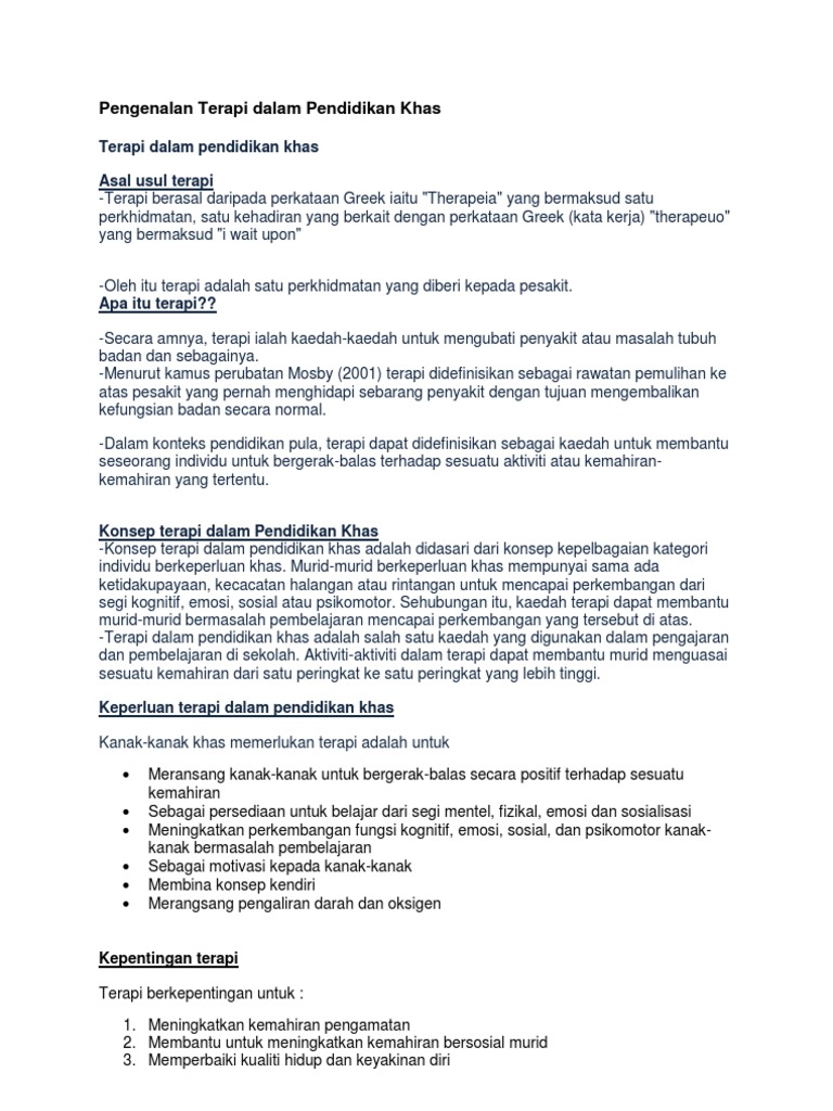 Nota Ringkas Terapi Dalam Pendidikan Khas