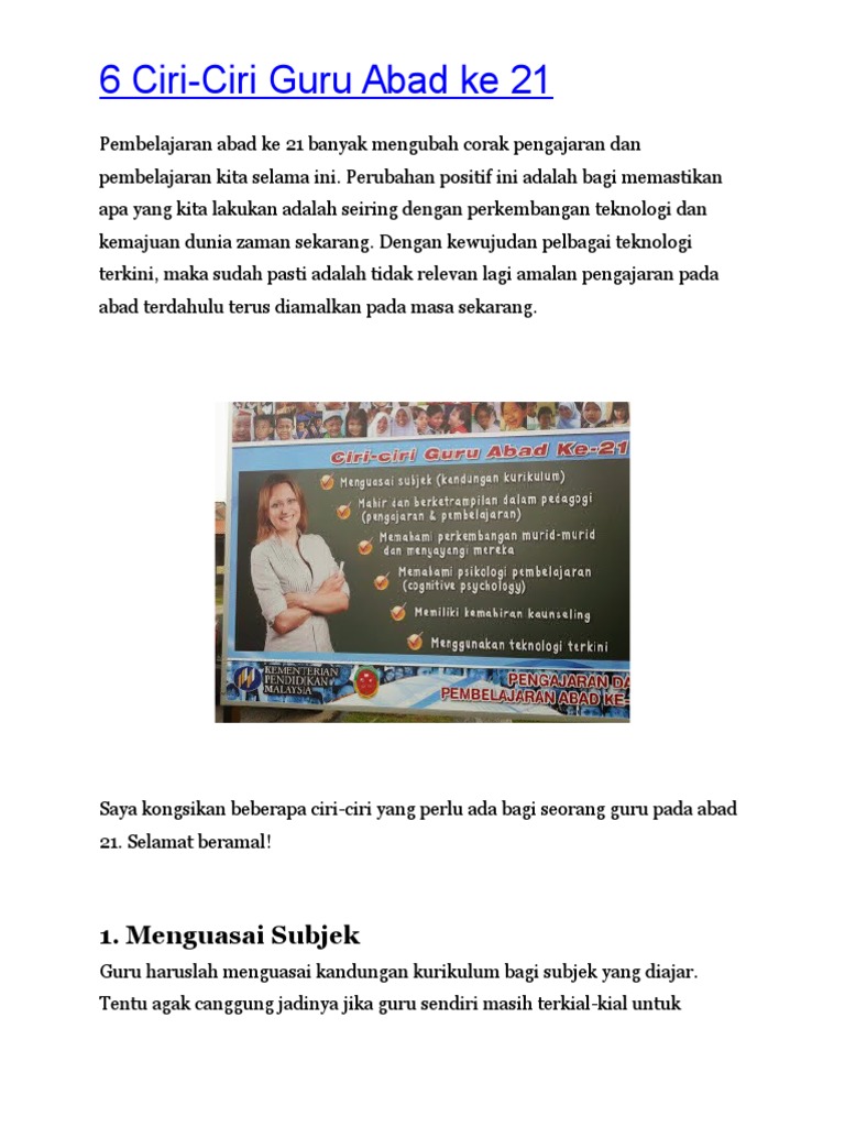 Ulasan Ciri Ciri Murid Abad Ke 21