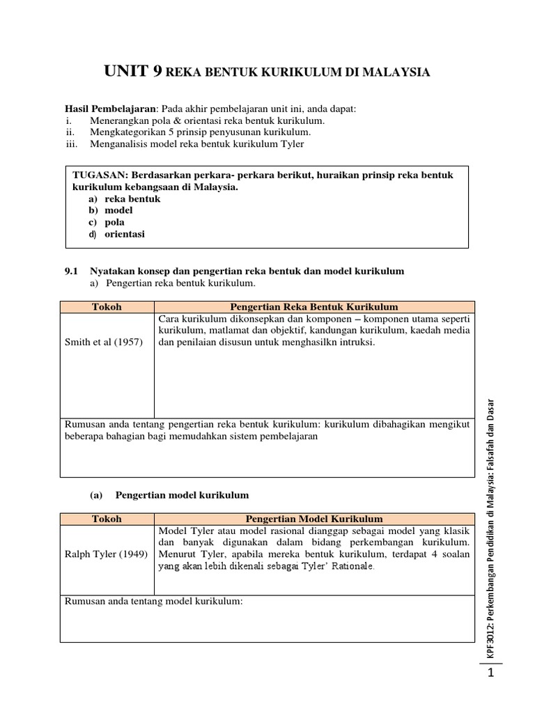 Unit 9 Reka Bentuk Kurikulum Unit 9 Reka Bentuk Kurikulum Di Malaysia Soalan Perbincangan I Nyatakan Konsep Dan Pengertian Reka Bentuk Dan Model Course Hero